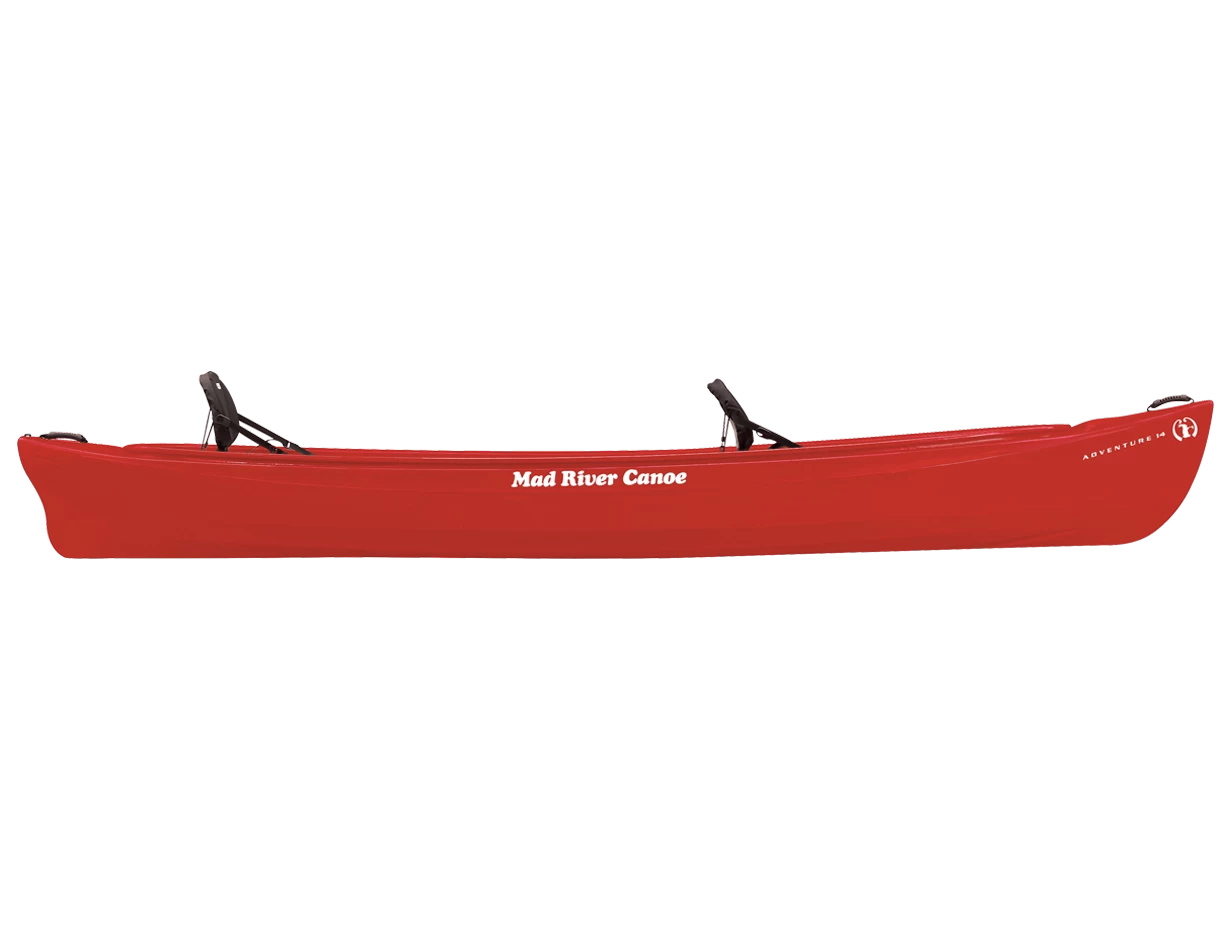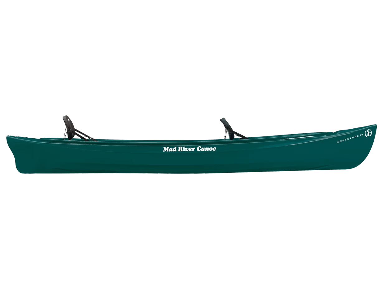 Der beliebte Adventure 14 von Mad River Canoe ist etwas kompakter und wendiger als der größere Adventure 16, bietet aber auch viel Platz und eine hohe Zuladung. Robustes Polyethylen Material macht die Boote pflegeleicht und langlebig. Gepolsterte Sitze hinten und vorne mit einstellbarer Rückenlehne bieten einen hohen Sitzkofort und machen den Adventure 14 von Mad River besonders bequem. Dieses familienfreundliche Kanu ist leicht beherrschbar, bequem und pflegeleicht. Der Adventure 14 und 16 kann auch gut mit Doppelpaddel gefahren werden.