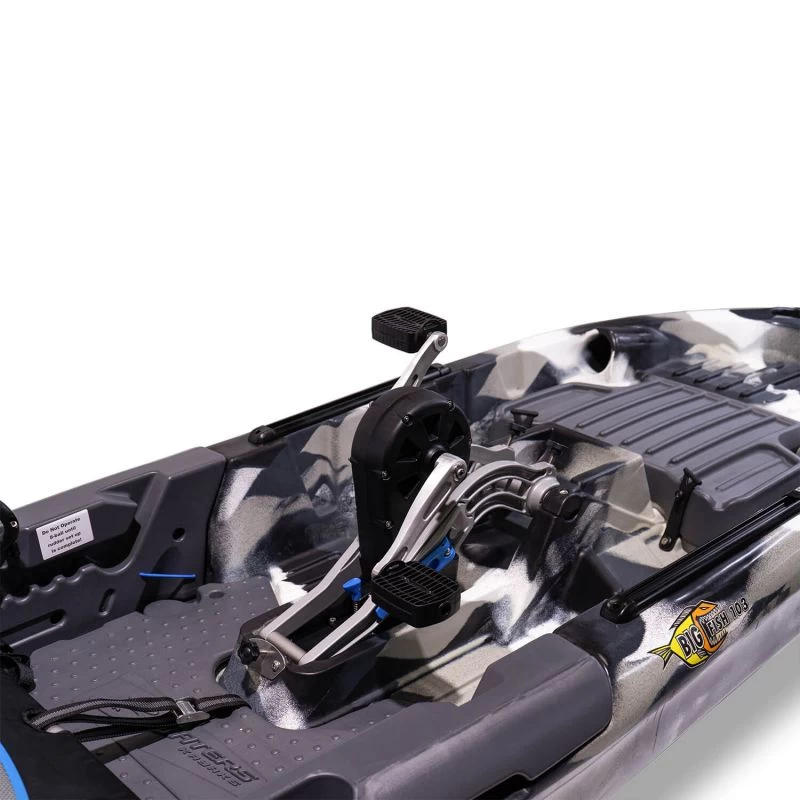 Der neue, sehr robuste Big Fish 103 ist das jüngste Modell der beliebten Big Fish Kajak-Serie. Der Big Fish 103 wurde speziell für den Pro Fish Pedal Drive entwickelt, der mit dem intuitiven 8-Ball-Lenksystem und dem übergroßen Beaver Tail-Ruder für das ultimative Freihand-Antriebserlebnis sorgt. Das Cathedral Trimaran-Rumpfdesign sorg beim Big Fish 103 extrem gute Stabilität. Ob auf Angeltour oder zum Freizeitpaddeln mit Freunden, der Big Fish 103 ist für jeden Einsatz ein treuer Partner. Der Big Fish 103 ist mit dem sehr bequemen EZ-Rider-Sitz ausgestattet, der den ganzen Tag über Paddelkomfort mit verschiedenen Sitz- und Stehkonfigurationen bietet. Ob hoch, niedrig, zurückgelehnt und wegklappbar, was im Stehen auch als Anlehnstütze dient. Immer die perfekte Position.