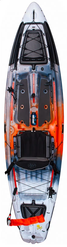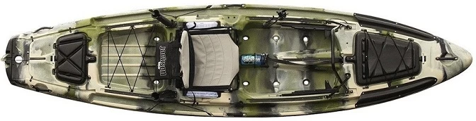 Auf Grund der flachen und sehr breiten Rumpfform bietet das Big Rig nicht nur eine extreme Kippstabilität, sondern auch viel Platz für Ausrüstung und Zubehör. Die aufklappbare Standing Bar, schafft zusätzliche Stabilität beim Angeln, Jagen oder bei Naturfotografie. Seitlich angebrachte Ablagemöglichkeiten für z. B. Ruten sorgen für Ordnung und Platz im Cockpit.