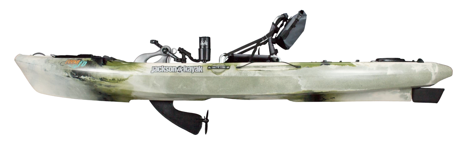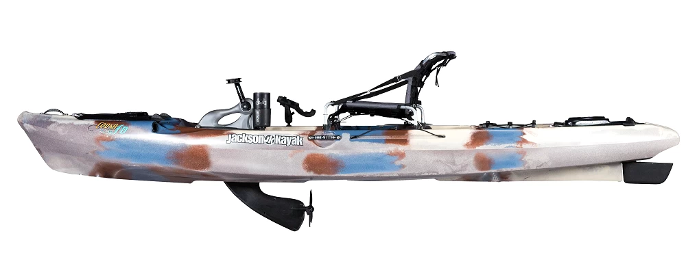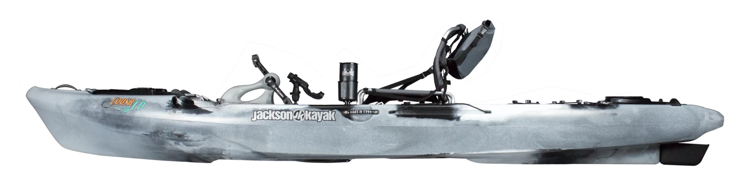 stolze 204 kg. Wie von Jackson Kayak gewohnt erwartet Sie eine sehr umfangreiche und durchdachte Grundausstattung. Dazu gehören eine große Front- und Heck-Luke mit neuen Verschlüssen, integrierter Rutenspitzenschutz auf beidseitig, Paddelhalter, zahlreiche Heavy Duty Gear Tracks, ein