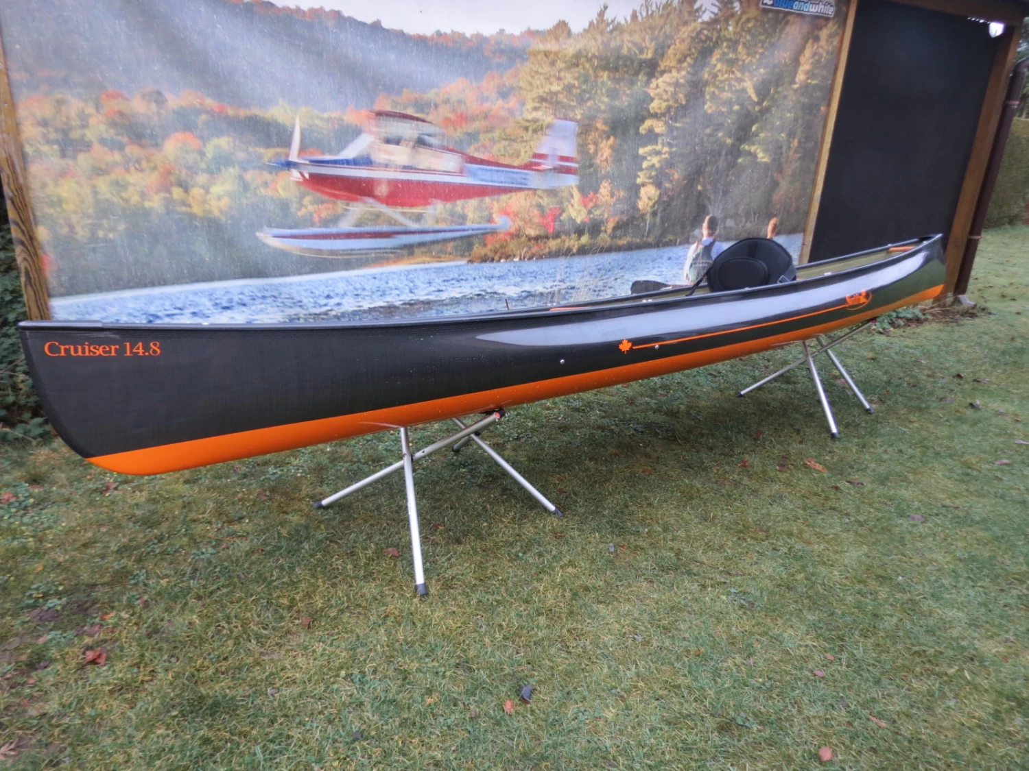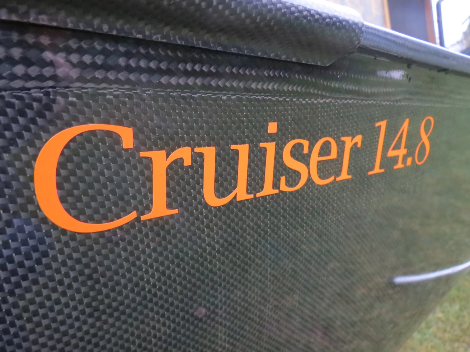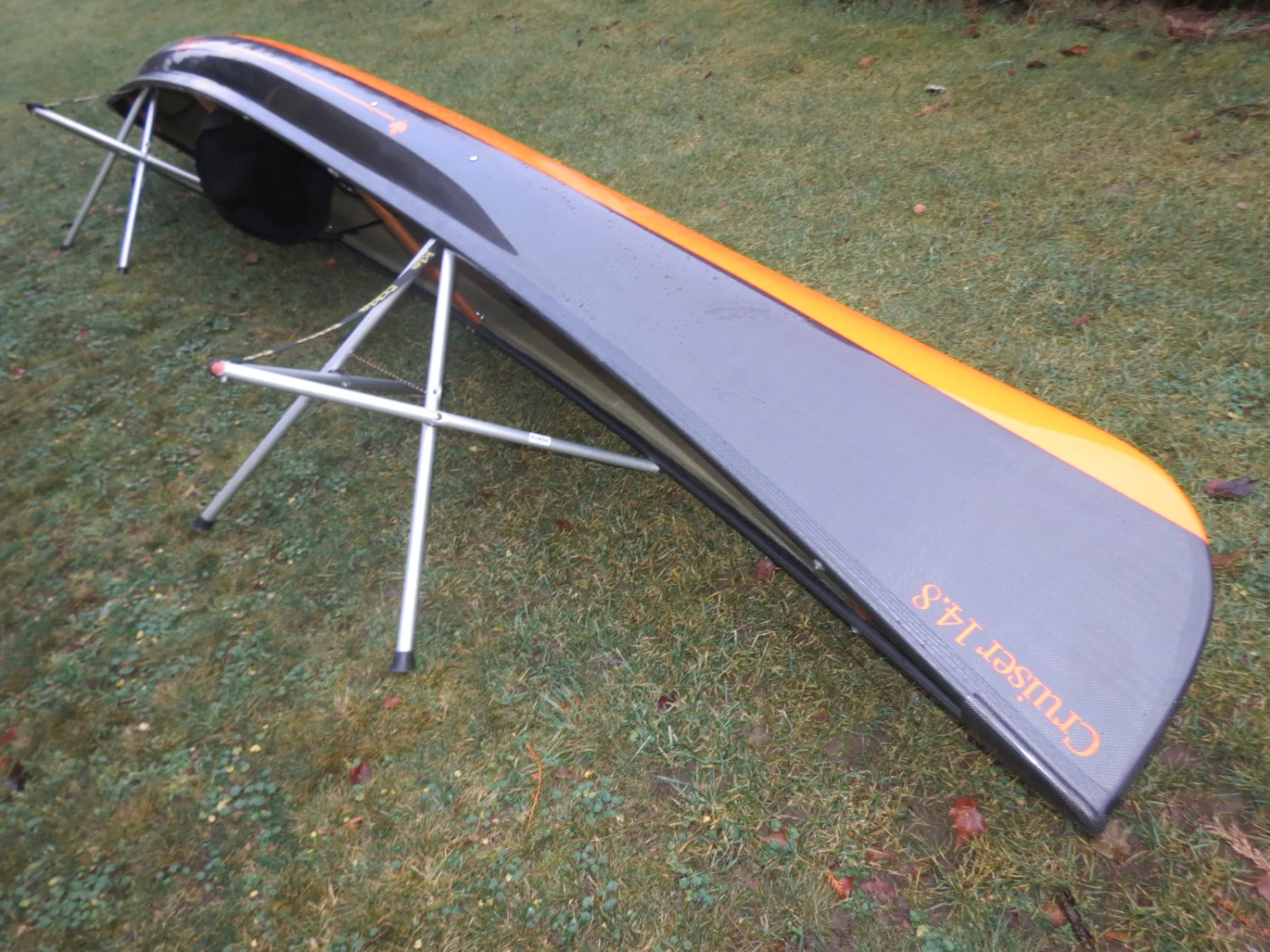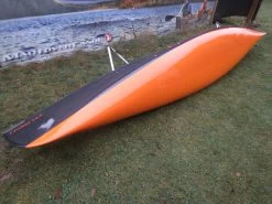 Hier z. B. der sehr schnelle und handliche Cruiser 14.8 in leichter aber robuster Kevar Fusion- Bauweise, innen Kevlar Gold, Carbon/Kevlar Süllrand und sehr bequemer Sitzanlage mit hoher Lehne. Das Unterschiff ist mango.