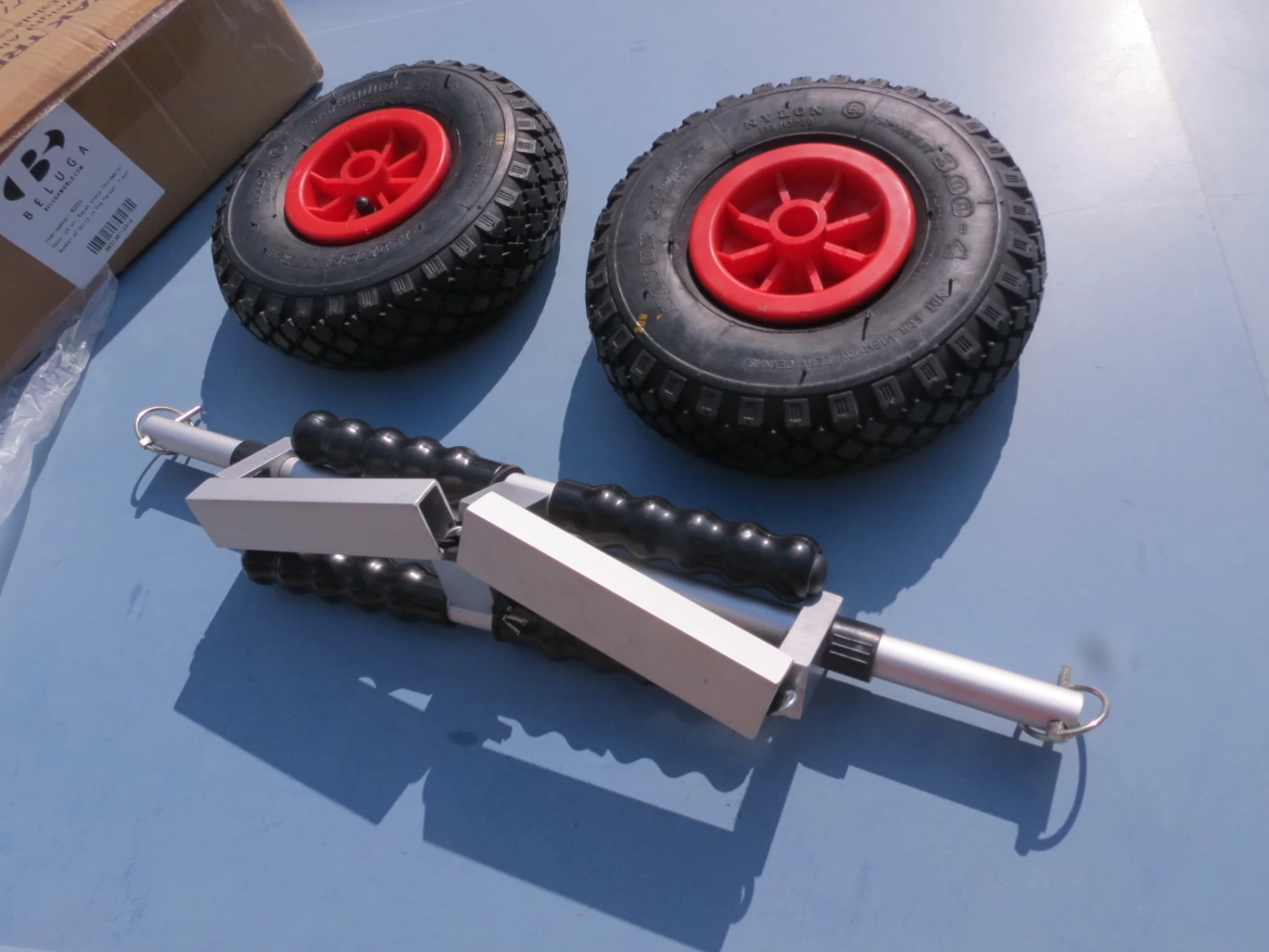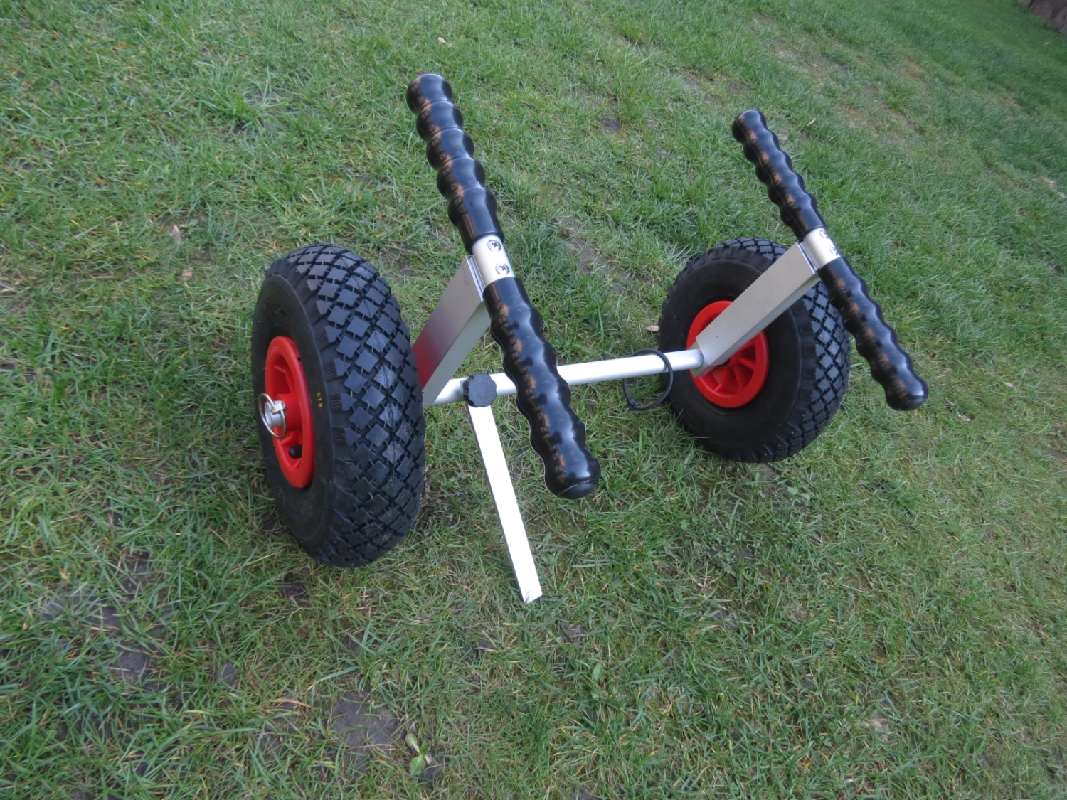 Schnell zu fixierender, handlicher Steven-Bootswagen für Kajaks und Kanadier. Material: Edelstahl Maße zerlegt ca. H/B/L: 14/24/57 cm Durchmesser der Räder: 210 mm Gewicht: ca. 4 kg zul. Tragkraft: ca. 90 kg