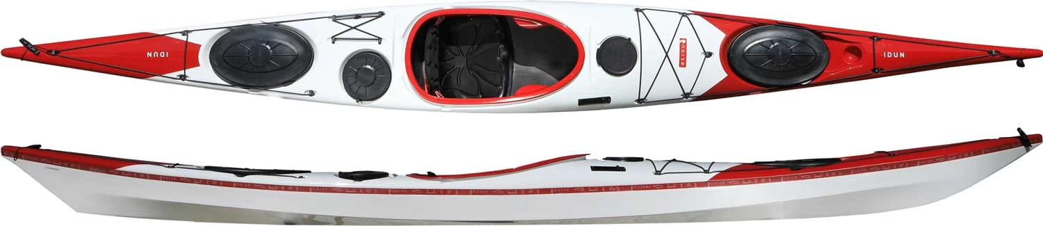 Der Idun ist der kleinere Bruder vom Bylgja von Norse Kayaks. Er ist ein schnelles Knickspannt- See- und Wanderkajak mit Skeg ausgestattet. Schnell, stabil, sehr guter Geradeauslauf und ein bequemes Cockpit. Alles ist flexibel während der Fahrt verstellbar. Auch diese Kajak ist in robuster Glasfaser- Kunststoff und leichter Carbon Ausführung, in je rot/weiß oder schwarz/weiß möglich.