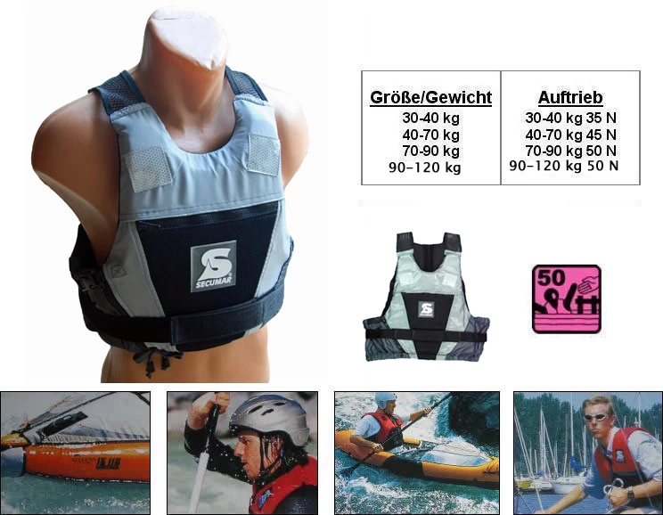 Praktische 50N Schwimmhilfe nach DIN EN ISO 12402-5 für anspruchsvolle Jollensegler oder Paddler. In schmutzunempfindlicher schwarz/grauer Farbe.