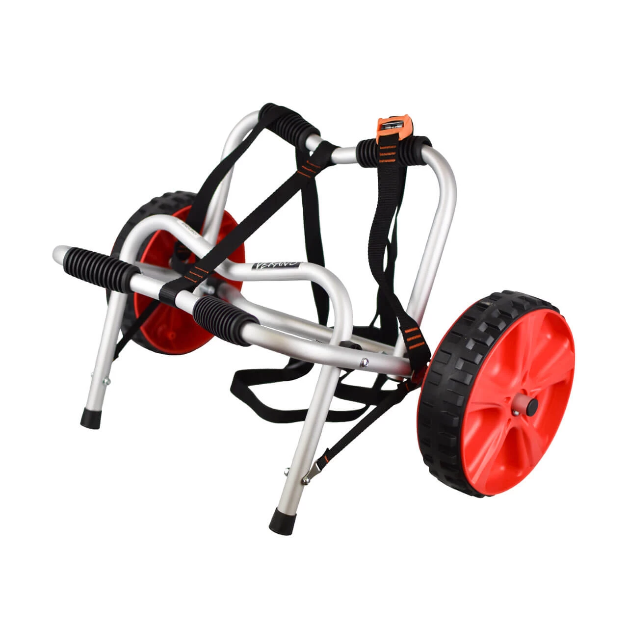 Stabiler und kompakter Transportwagen für Verano-Boote. Gefertigt aus leichtem, eloxiertem Aluminiumrohr. Ausgestattet mit Kunststoffrädern auf pannensicheren Gummilaufflächen und Spanngurt. Die Spanngurt-Klemme mit Gummi-Schutzhülle verhindert Beschädigungen.