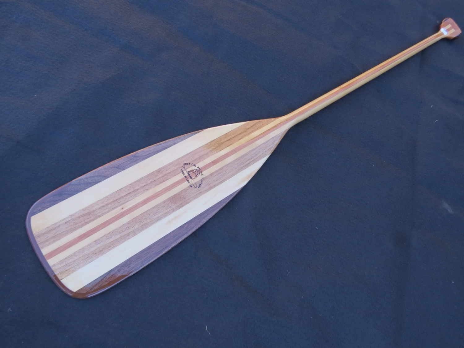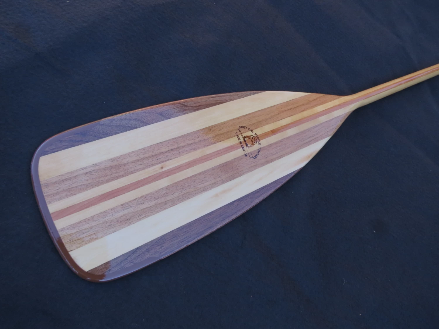 Ein sehr hochwertiges, gerades Tourenpaddel mit sehr schöner Optik und mittelgroßem Blatt und PU-Kante. Das Grey Owl Holzstechpaddel besitzt ein 9-fach laminiertes Blatt aus Walnuß, Linde, Butternut und Schwarzkirsche. Der Schaft ist laminiert. Der asymmetrische Palmgriff liegt sehr angenehm in der Hand.