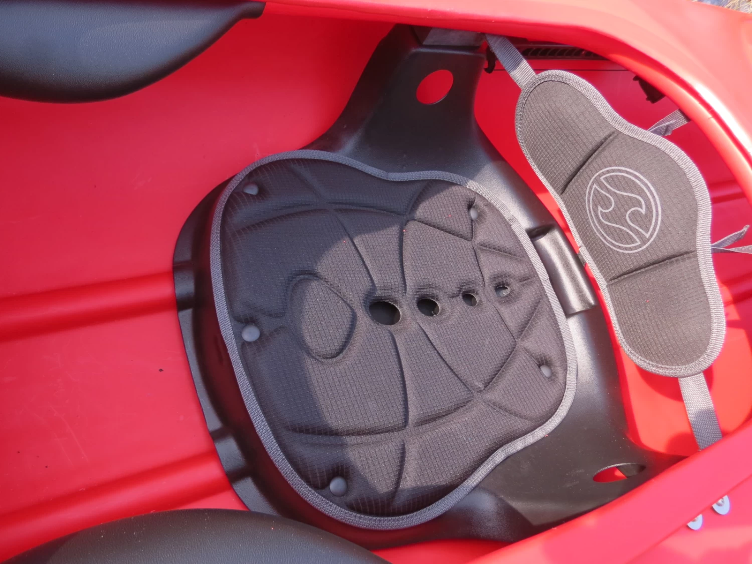 Our CORE WhiteOut Outfitting system gives supreme comfort with adjustable backband and leg lifter control. The foot controlled steering on our touring rudder system provides superior control and makes steering a course more effortless.