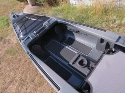 Der vielfach verstellbare und herausnehmbare “1ST CLASS HIGHT-LOW” Sitz ist super bequem. Das „Ultimate“ FX 12 Pro ist mit unseren „Easy-Foot“ Fußrasten ausgerüstet. Diese ermöglichen langes, ermüdungsfreies Paddeln und können bequem im Sitzen verstellt werden. Rechts und links vom Cockpit befinden sich „The Groove“ Schienen, die für die Montage von Ausrüstung wie GPS, Echolot, Kamera und mehr genutzt werden können. Eine Steueranlage kann nachgerüstet werden. Für das „Ultimate“ gibt es viele weitere individuelle Ausstattungsmöglichkeiten.