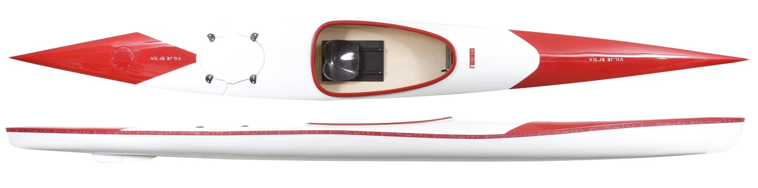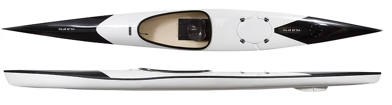 Auch diese Kajak ist in robuster Glasfaser- Kunststoff und leichter Carbon Ausführung, in je rot/weiß oder schwarz/weiß möglich.